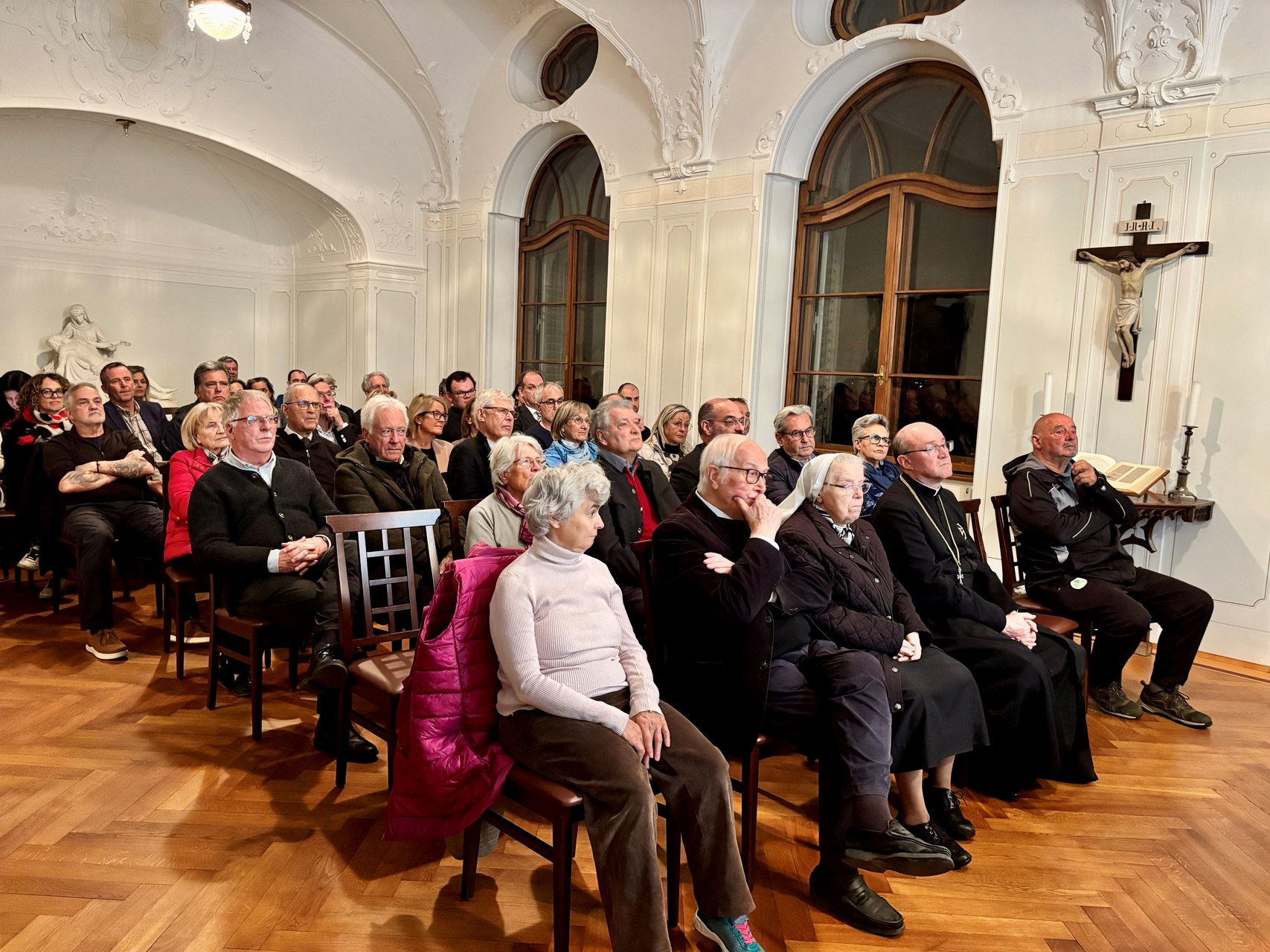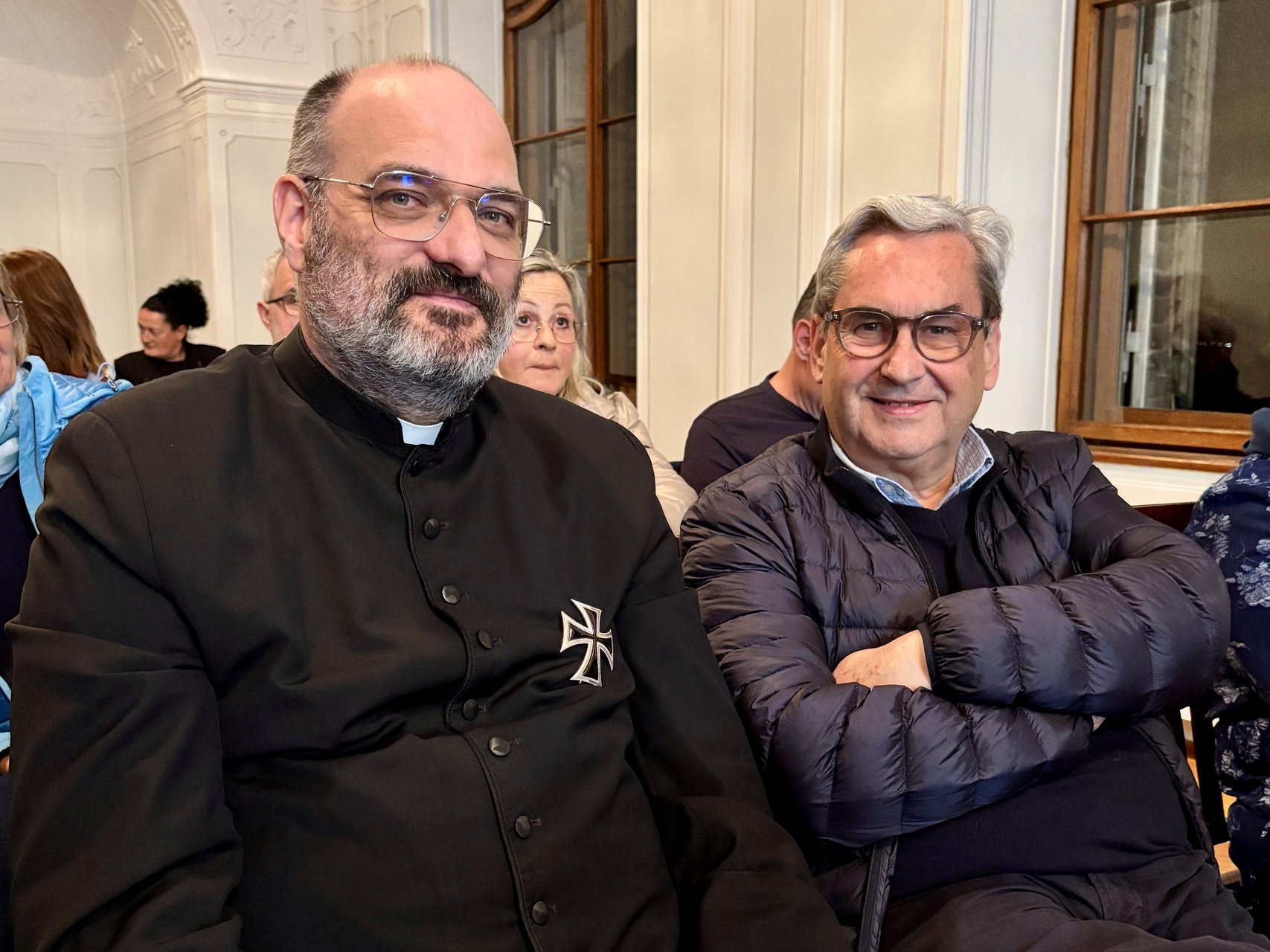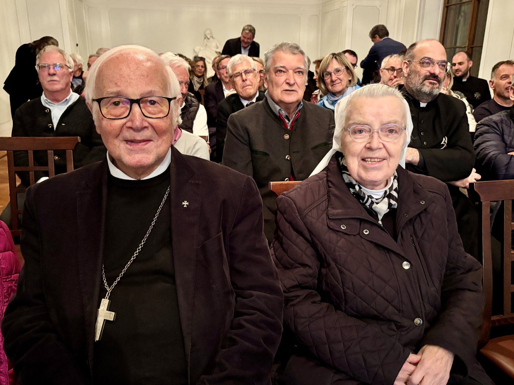 Prior Christian Stuefer OT eröffnete den Abend mit anerkennenden Worten zu Pater Karl Gögele, der den Mut hatte, den Widrigkeiten seiner Zeit zu trotzen, und bezeichnete das Werk als ein „Trostbuch“, das nicht nur die Geschichte der Pfarre St. Leonhard dokumentiert, sondern auch für die Herausforderungen der Gegenwart Halt und Orientierung bietet.