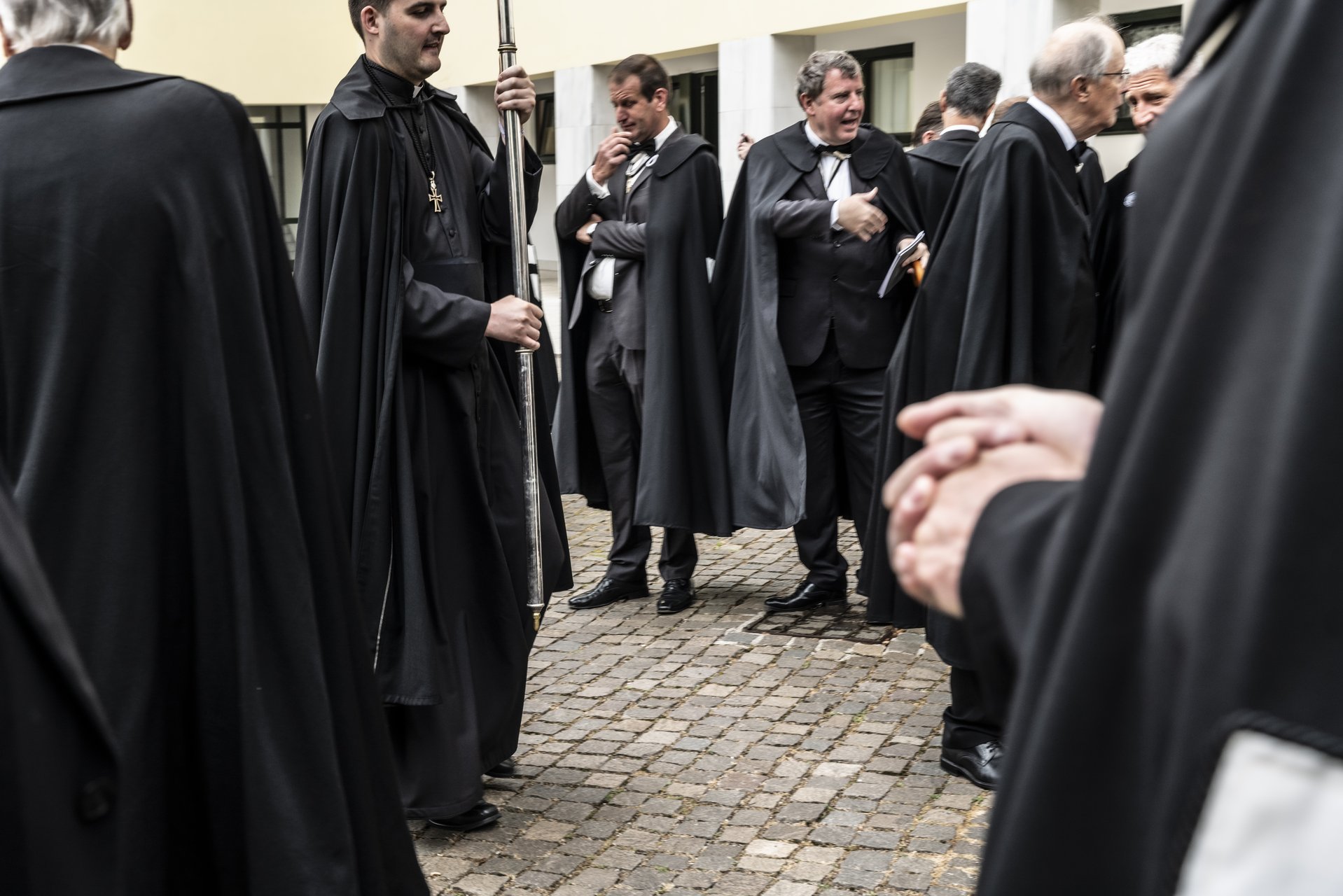 Bei dieser ersten Vollversammlung ging es aber auch um die Einführung von Ordensinsignien für die Familiaren, wobei zutage getretene Haltung sehr restriktiv ausfiel. Hinsichtlich der Einführung eines schwarzen Mantels hatte sich Weger bereits im Jahre 1951 ablehnend geäußert, weil er der Ansicht anhing, „dass solchen Äusserlichkeiten gewehrt werden soll“. Dennoch sprachen sich die Südtiroler Confratres für die Einführung eines schwarzen Mantels aus, weil ein solcher in Deutschland und Österreich schon seit der Mitte der 50er Jahre bzw. seit 1957 in Verwendung stand, und man trotz aller Skepsis den Standpunkt vertrat, davon nicht abstehen zu können. Allerdings sollte dieser Mantel aus einem Stoff bestehen, „der schön fällt und nicht knittert“. Auf keinem Fall sollte er aus Samt sein, das Kreuz an der linken Mantelseite sollte „etwas kleiner sein als bei den Familiaren in Österreich und Deutschland“, zum einen weil dies „vornehm und edel“ wirke, zum Zweiten wohl aber deshalb, weil alles andere als zu protzig und dem Empfinden des Südtirolers als unpassend ansah.